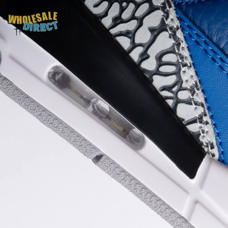 The Air Jordan 3 Retro "Varsity Royal" showcases an OG-inspired look, complete with signature details inextricably tied to Jordan heritage. They include embroidered Jumpman branding atop the tongue, visible Air cushioning in the midsole and grey elephant-print overlays at the toe and heel. The tumbled leather upper is rendered in a royal blue finish, a non-Chicago hue that figures prominently throughout the history of the franchise. A second Jumpman logo adorns the molded heel panel.