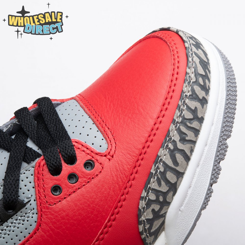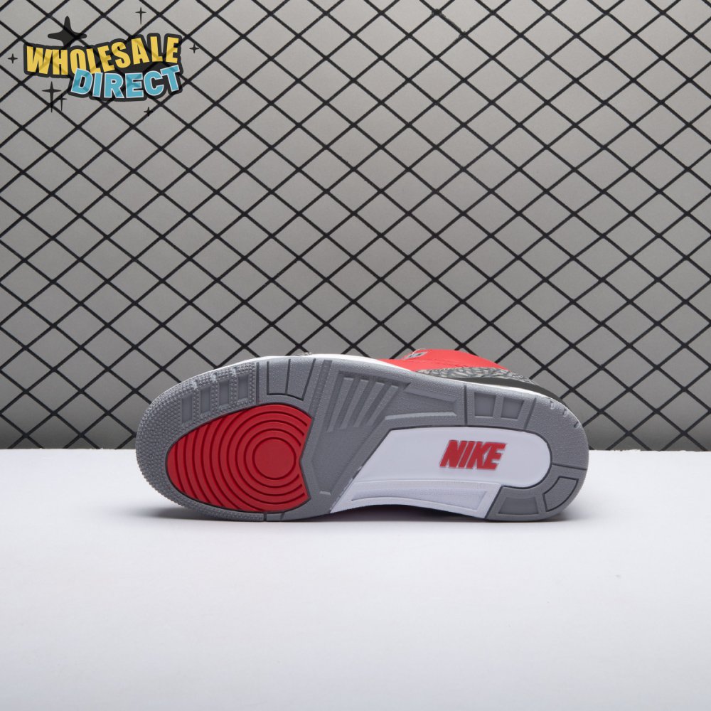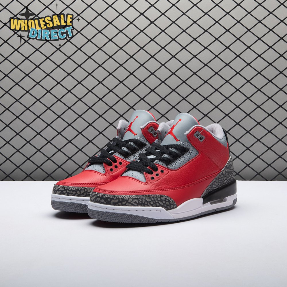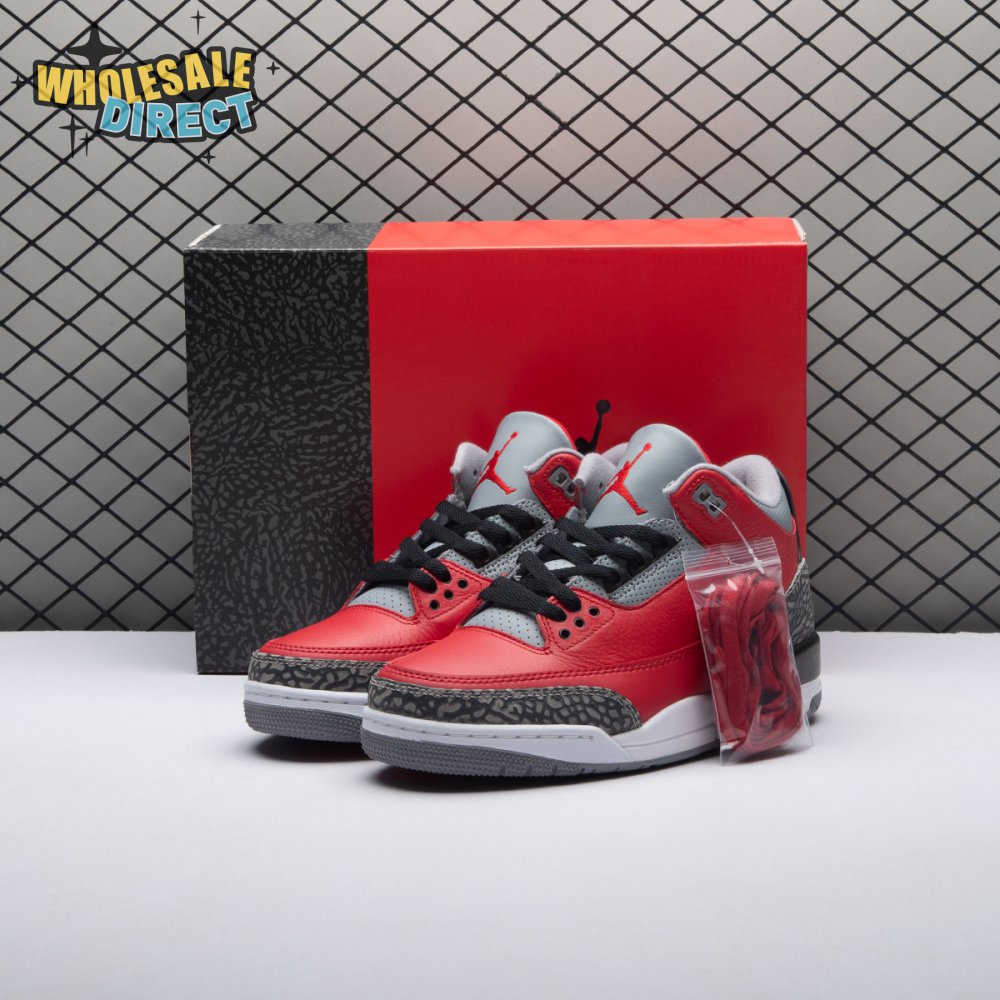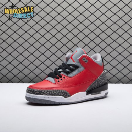 Dropping in conjunction with the 2020 NBA All-Star Weekend in Chicago, the Air Jordan 3 Retro SE 'Unite' showcases classic color blocking that stays true to the sneaker"s Windy City heritage. The tumbled leather upper is finished in a bold Fire Red hue, complete with Nike Air branding and grey cement-print overlays at the toe and heel. The mid-top is anchored by a contrasting white midsole with visible Air sole cushioning.