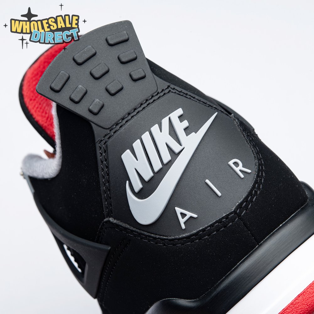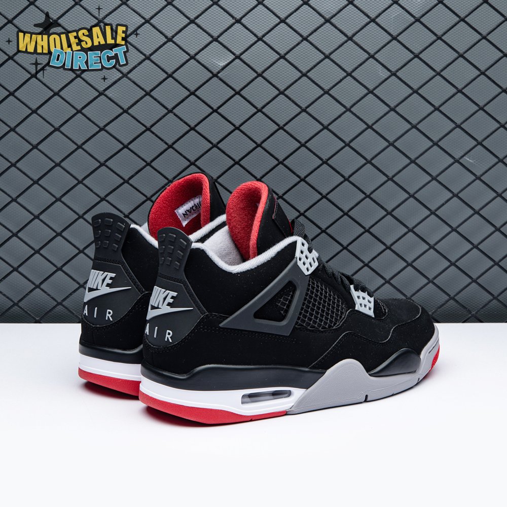 The 2019 edition of the Air Jordan 4 "Bred" celebrates the 30th anniversary of the classic silhouette, appearing in the same colorway that Michael Jordan wore when he sank "The Shot" during the first round of the 1989 NBA playoffs. It"s rendered in a build that"s faithful to the original, complete with a black nubuck upper, visible Air Sole cushioning underfoot and Nike Air branding on the heel.