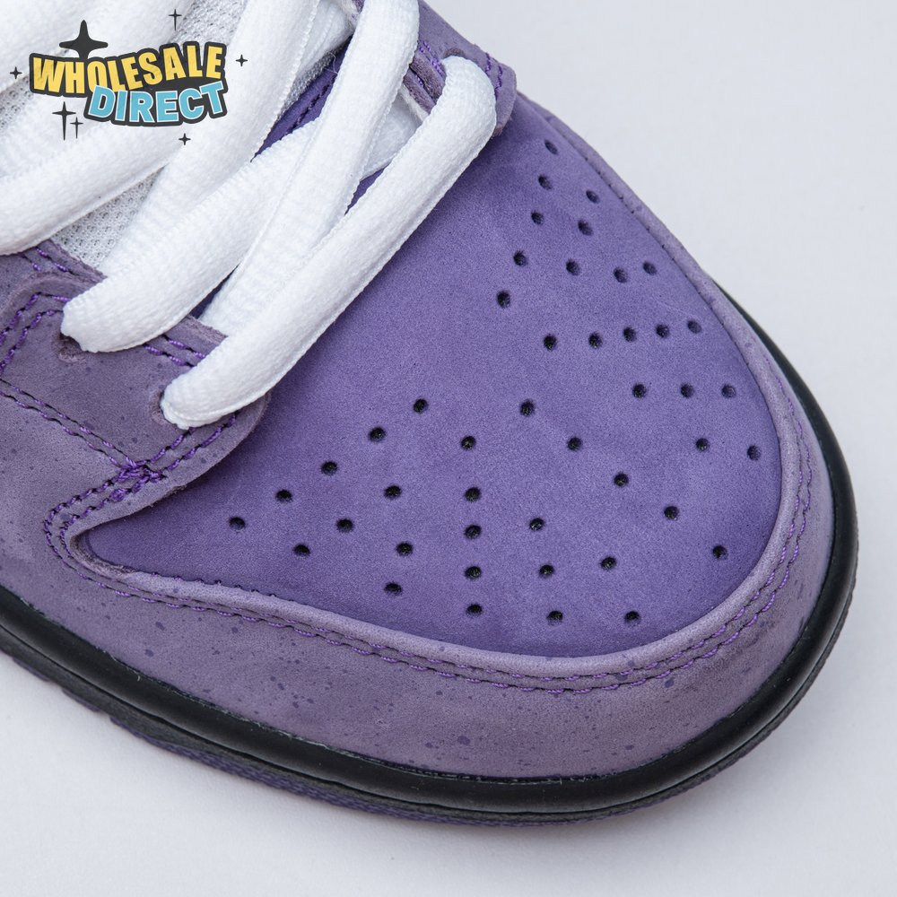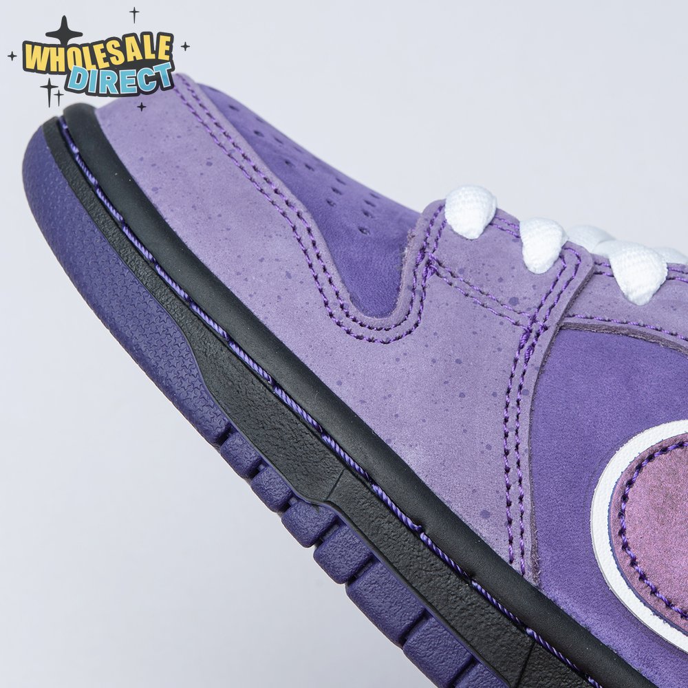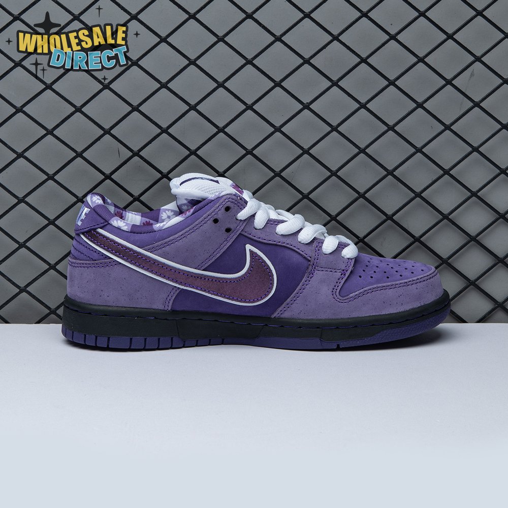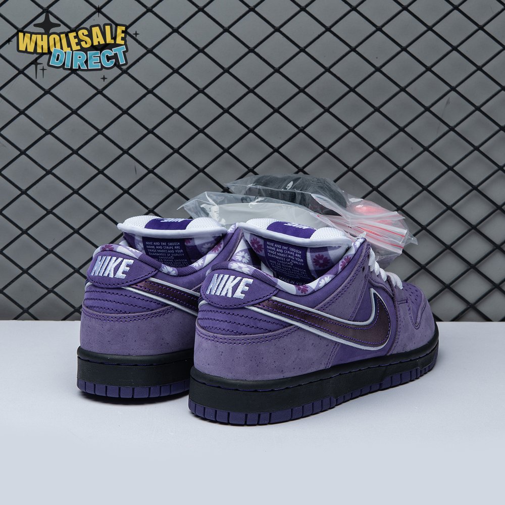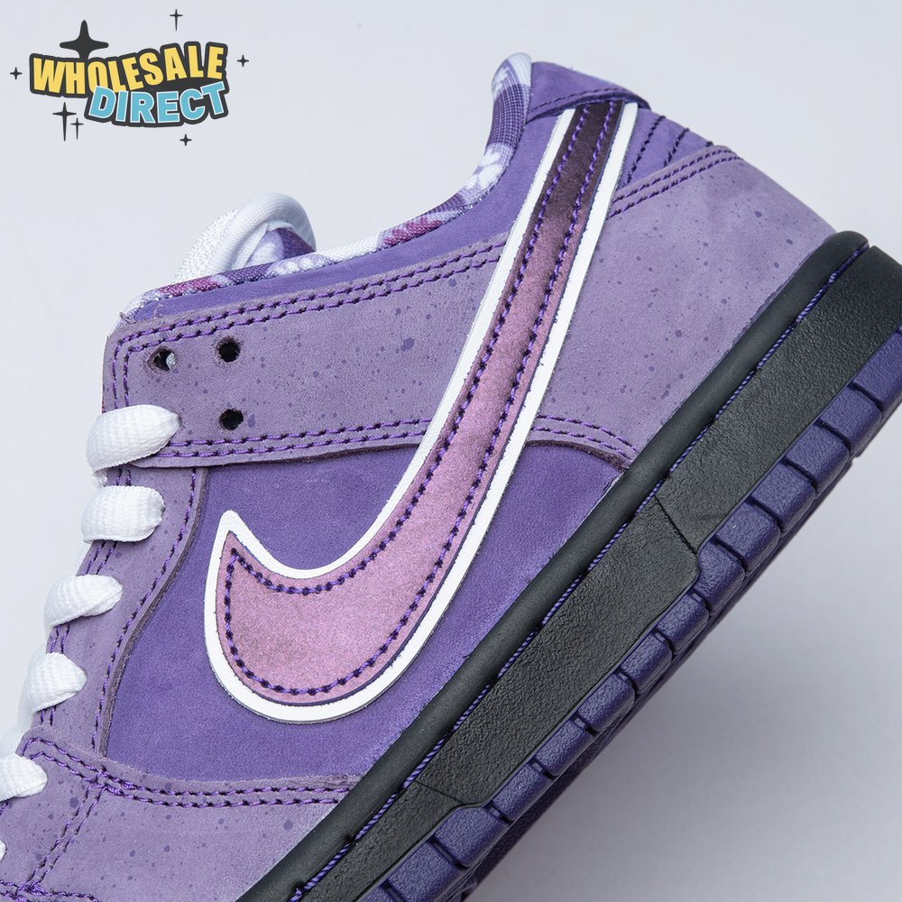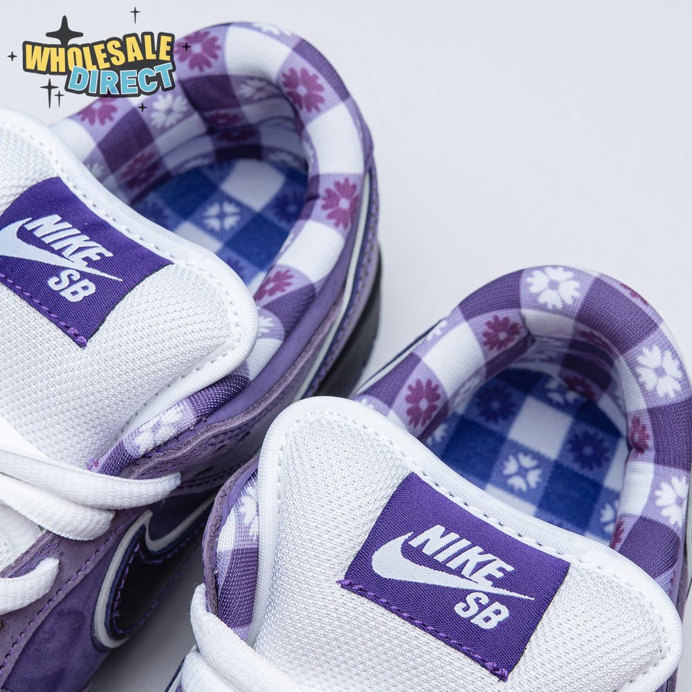 Concepts and Nike SB are back at it again, with a new iteration of the 'Lobster' inspiration. The Dunk Low Premium SB 'Purple Lobster' is similar to the three previous executions, inspired by odd color specimens found in nature due to genetic abnormalities that make their exoskeleton appear in different shades, such as yellow, blue and purple. Special details include a red and white plaid pattern on the lining, and an elastic band wrapped around the forefoot similar to how lobster claws are secured.
