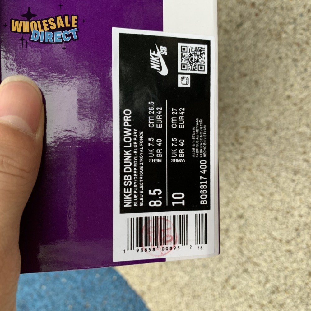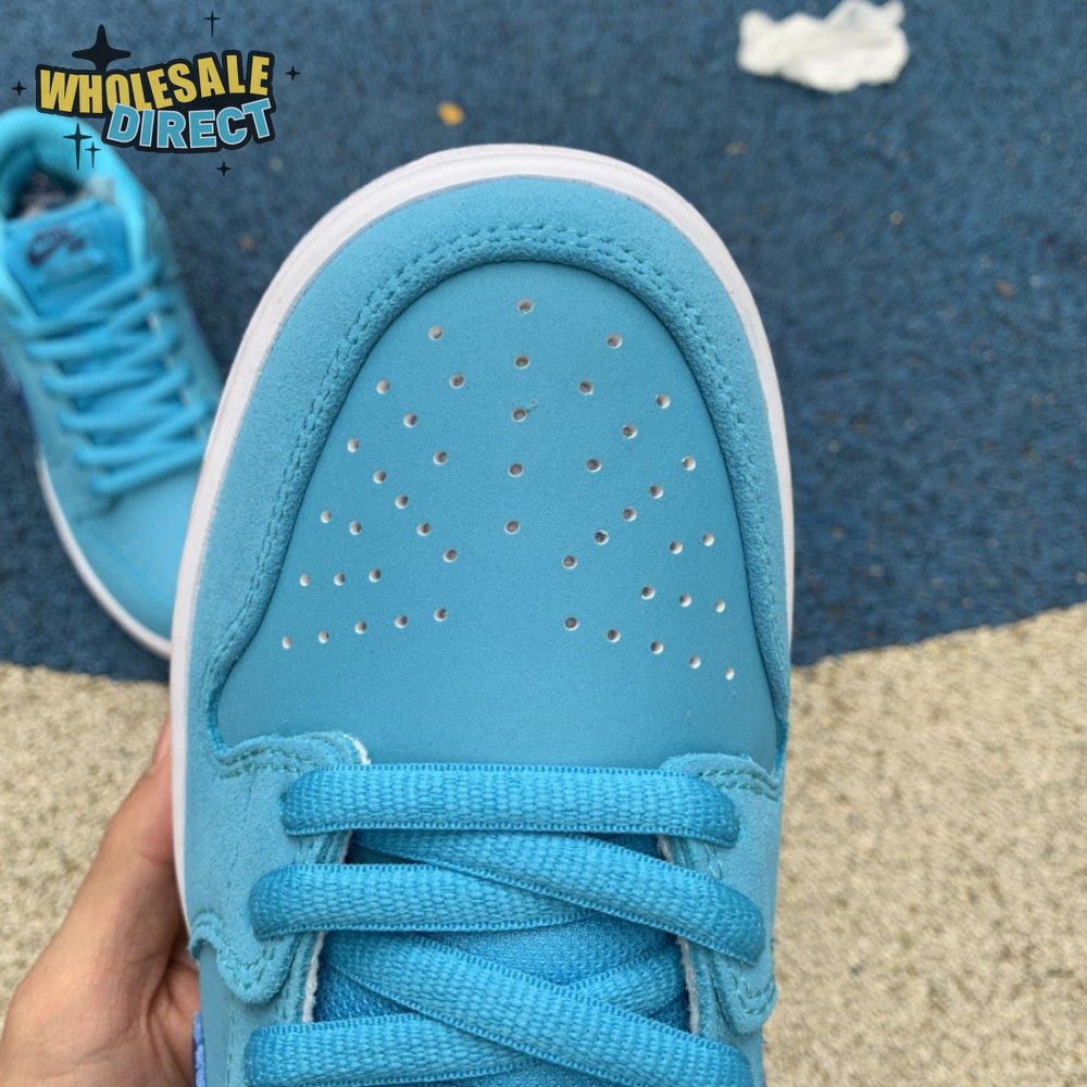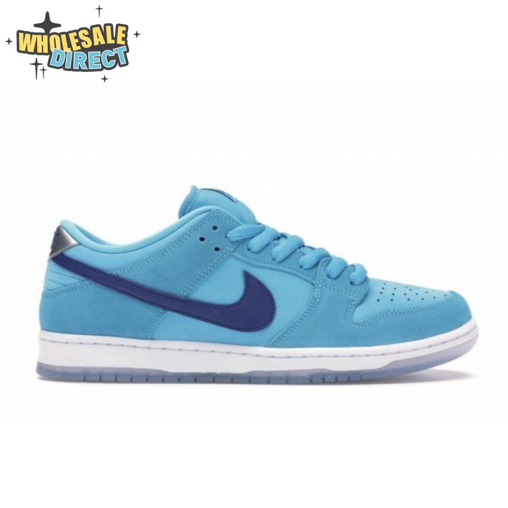 The Nike Dunk Low SB "Blue Fury" showcases a vibrant blue finish on the upper, constructed from nubuck with tonal suede overlays. The sneaker"s signature Swoosh is rendered in royal blue leather, matching an embroidered Nike wordmark on a metallic silver heel tab. A padded mesh tongue combines with Zoom Air cushioning in the sockliner for enhanced comfort. The low-top rests on a resilient white foam midsole, supported underfoot by a translucent rubber outsole.