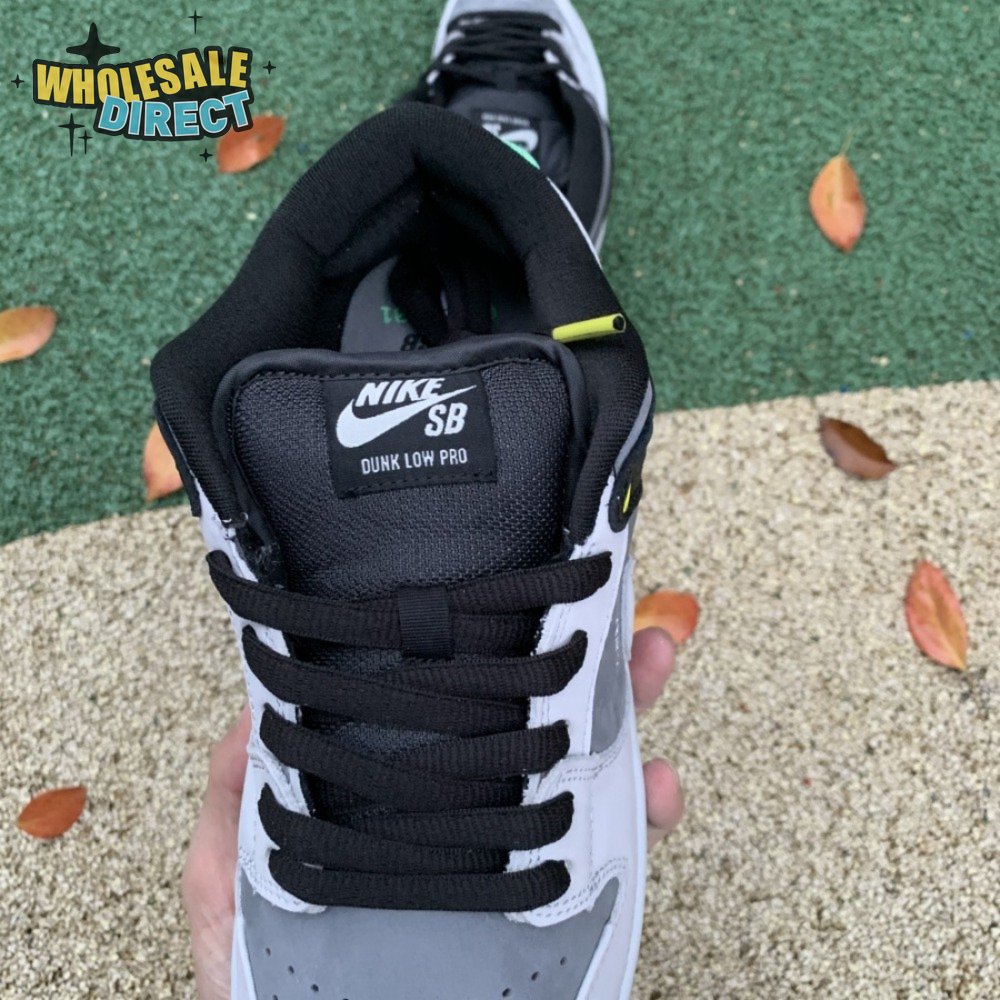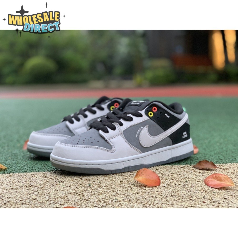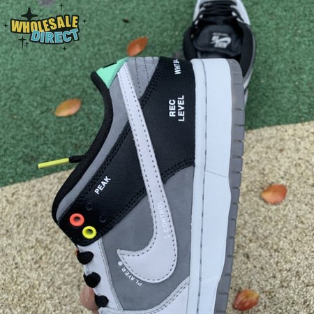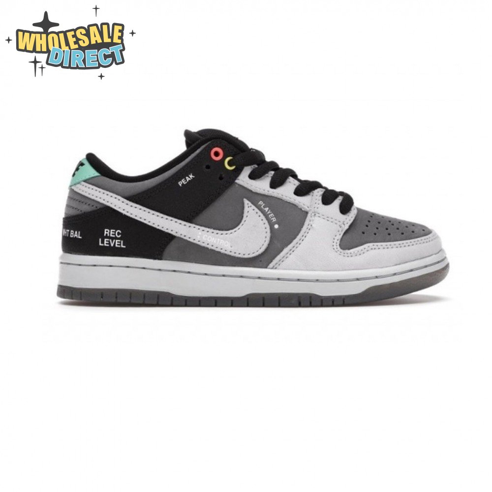 The Nike Dunk Low SB "Camcorder" takes inspiration from an iconic piece of equipment that was instrumental in the proliferation of skate videos in the "90s: the Sony DCR VX1000 camcorder. The low-top makes use of a charcoal nubuck upper, accented with a lighter shade of grey on the forefoot overlay and signature Swoosh. The black synthetic leather heel overlay is embellished with a series of camcorder functions, including "SHUTTER SPEED" and "REC LEVEL." Red and yellow eyelets, along with a mint green heel tab, add subtle pops of color to the neutral color scheme.