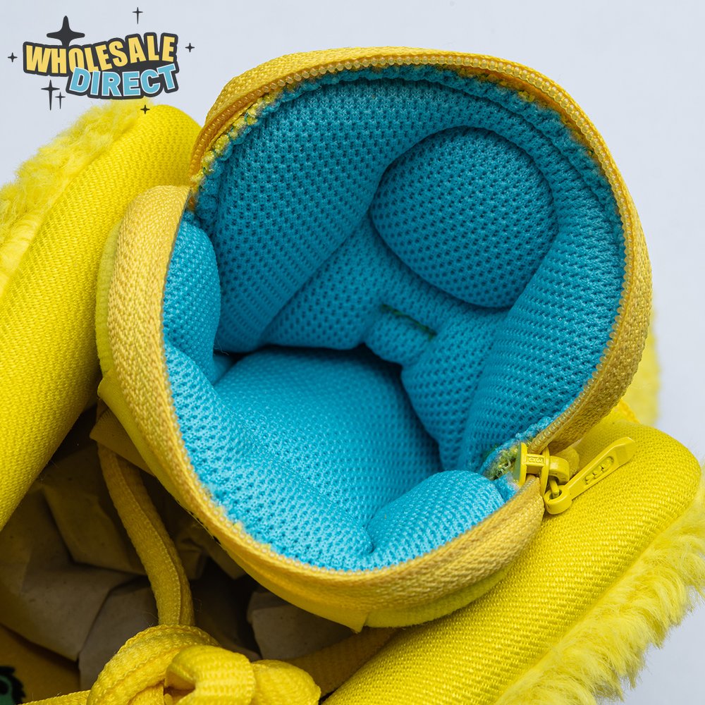 Developed in collaboration with the iconic San Francisco jam band, the Grateful Dead x Nike Dunk Low SB "Yellow Bear" features a unique design inspired by the back cover of "History of the Grateful Dead, Volume One (Bear"s Choice)," a live album originally released in 1973. A vibrant yellow finish is applied to the furry upper, fortified with tonal suede overlays and mounted atop a matching yellow foam midsole. Contrasting blue hits appear on the jagged Swoosh, rubber outsole and tongue, the latter furnished with a hidden stash pocket.