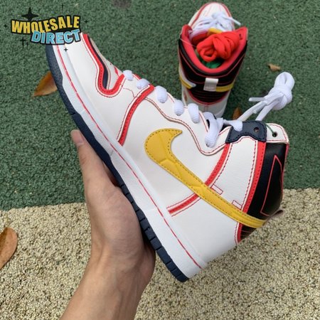 This Nike SB Dunk High RX-0 Unicorn Gundam high-top sneaker draws inspiration from the RX-0 Unicorn Gundam, which is an important locomotive in the novel. The paneled leather structure of the sneakers is similar to the body panels on the Unicorn Mobile Suit. Together with the unicorn logo on the heel and the removable yellow Swoosh check mark, they constitute the complete design of this pair of shoes.