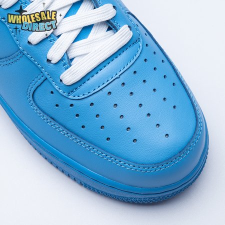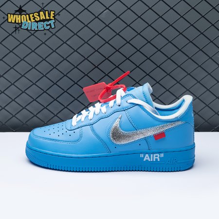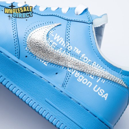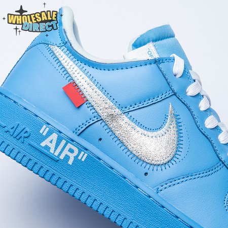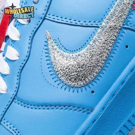 In celebration of his exhibit premiering at the Museum of Contemporary Art in Chicago in June 2019, Virgil Abloh teamed up with Nike once again to produce a Nike Air Force 1. The Off-White x Air Force 1 Low '07 'MCA' shoe features a University Blue leather upper and a Metallic Silver Swoosh with prominent stitching and a signature red tab. For a full circle-feel, the shoe reprises key design details from previous Off-White offerings, including the iconic zip tie and quoted branding.