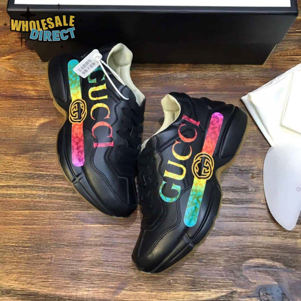 GUCCI RHYTON LEATHER SNEAKER WITH GUCCI LOGO