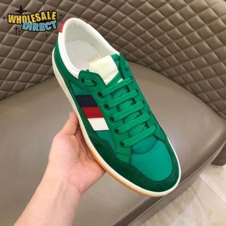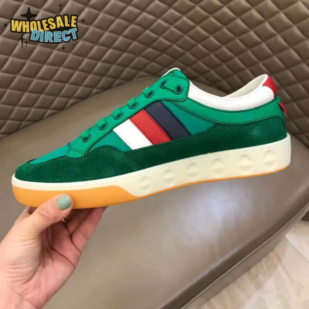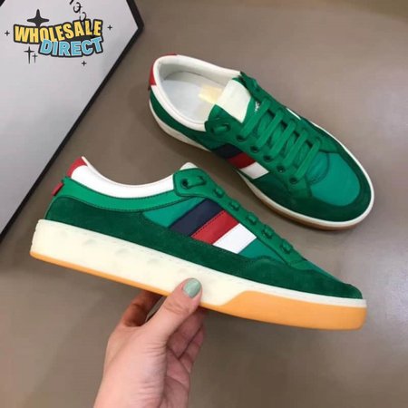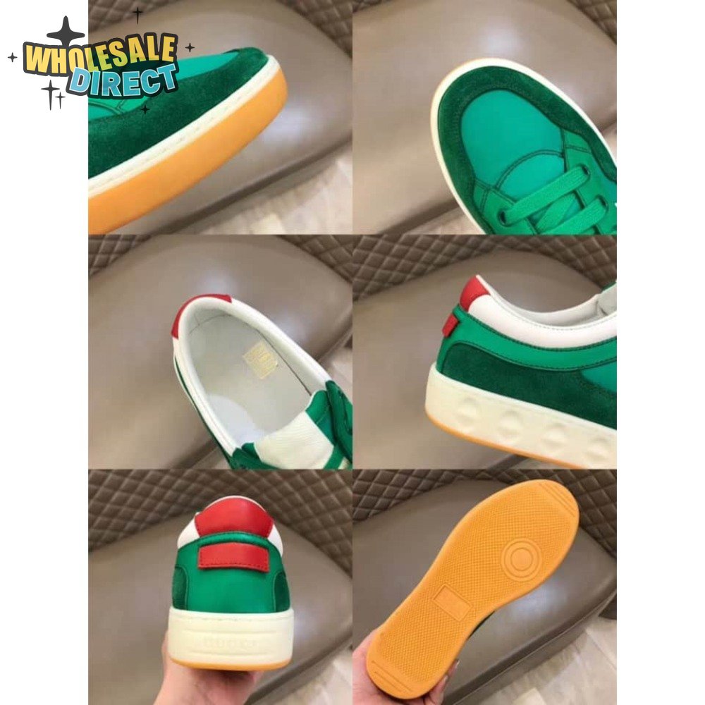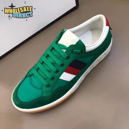GUCCI MEN'S GREEN LEATHER AND NYLON SNEAKERS - GC61