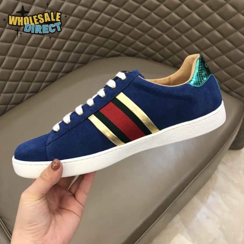 GUCCI ACE SNEAKER VELVET BLUE METALLIC STRIPE - GC40