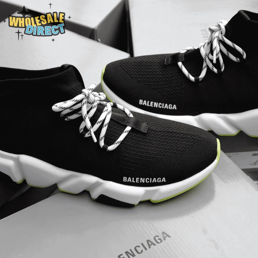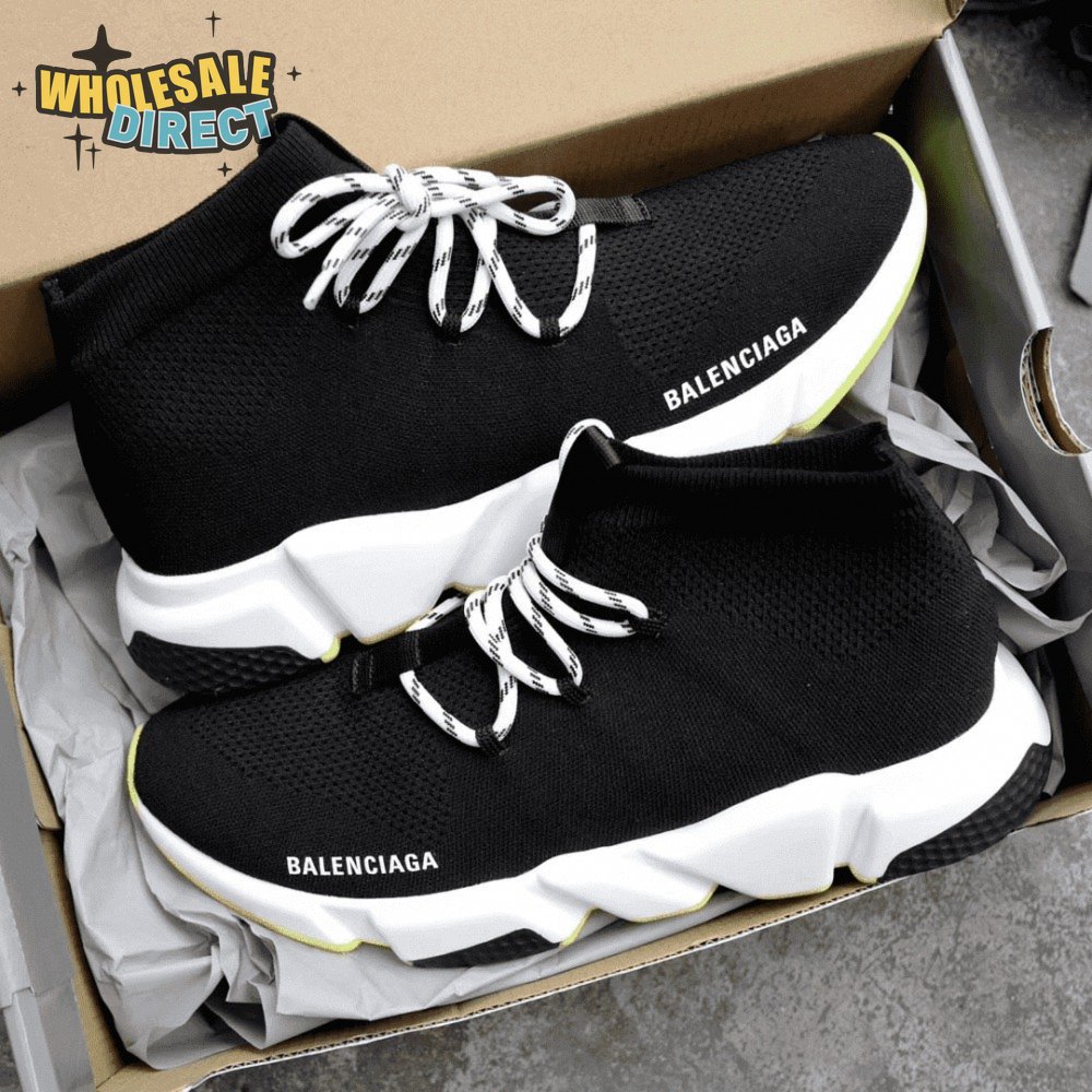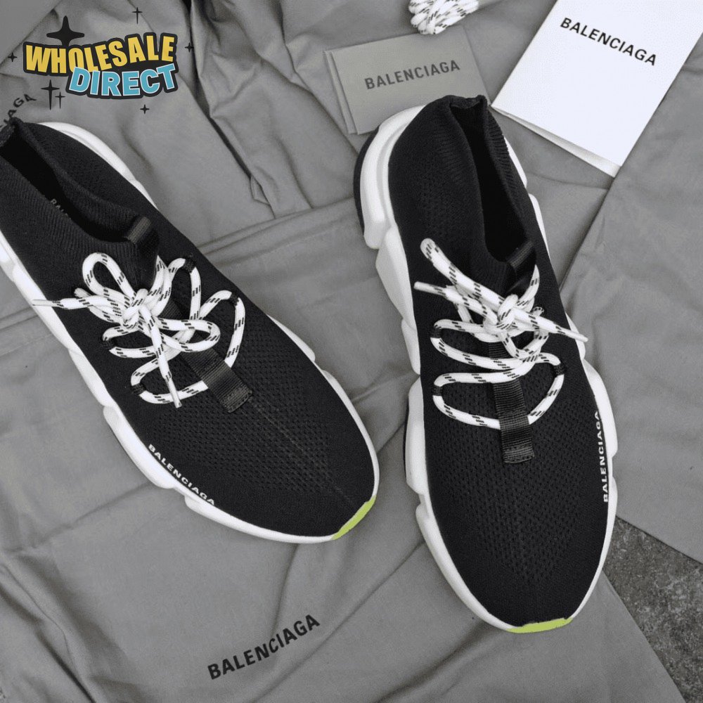 BALENCIAGA SPEED TRAINER LACE UP BLACK WHITE - BB16