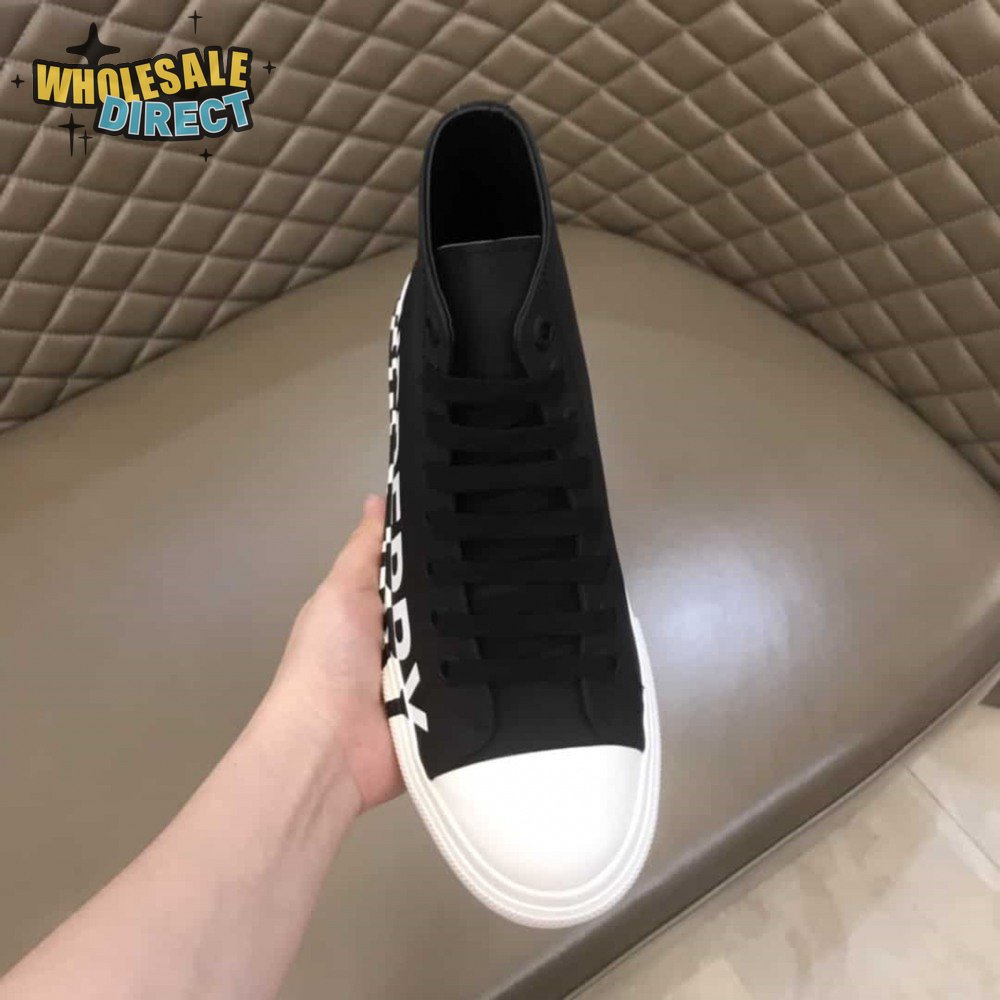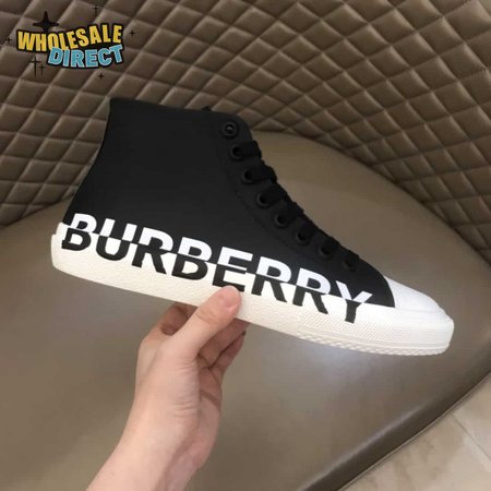 BURBERRY LOGO PRINT GABARDINE HIGH-TOP SNEAKERS - BBR31