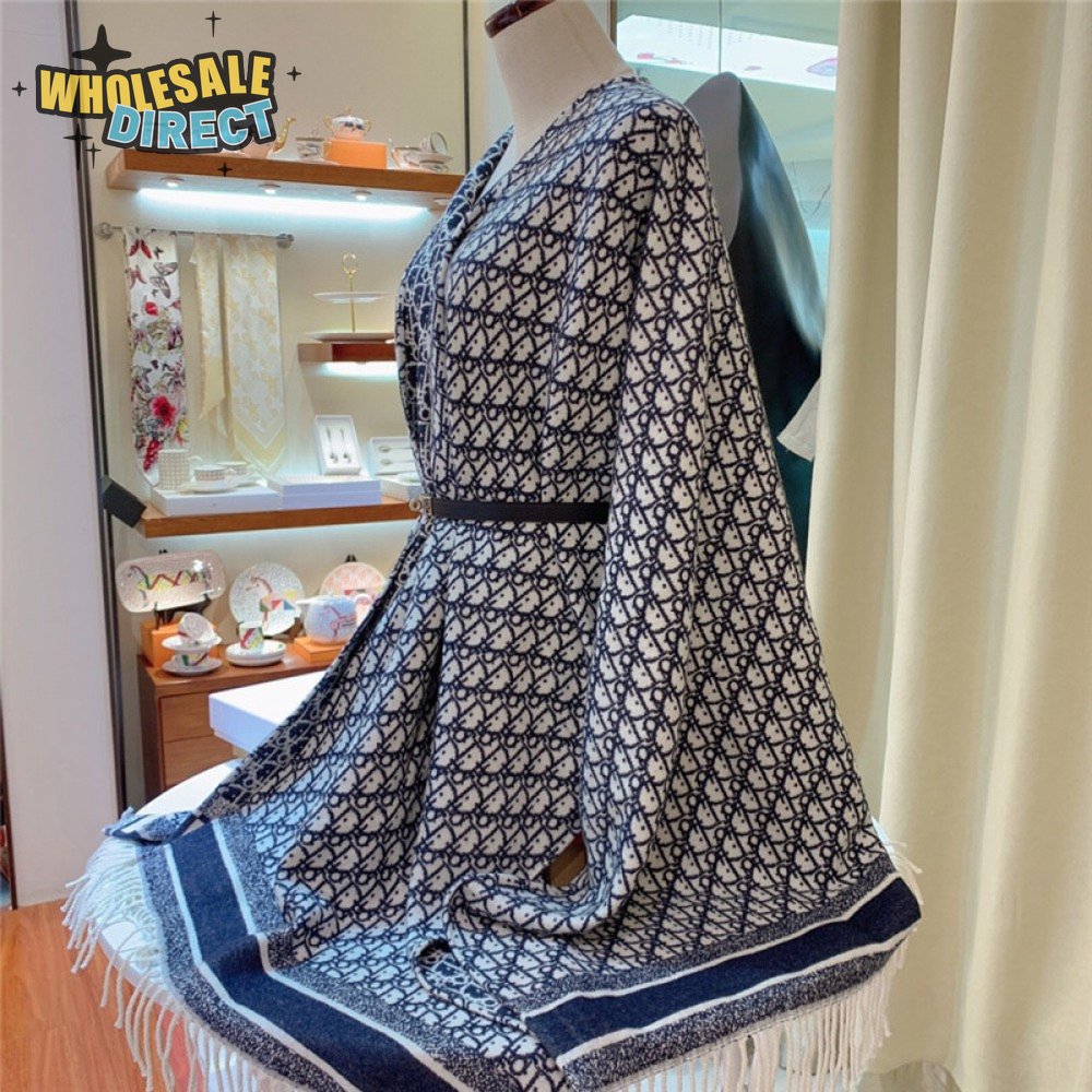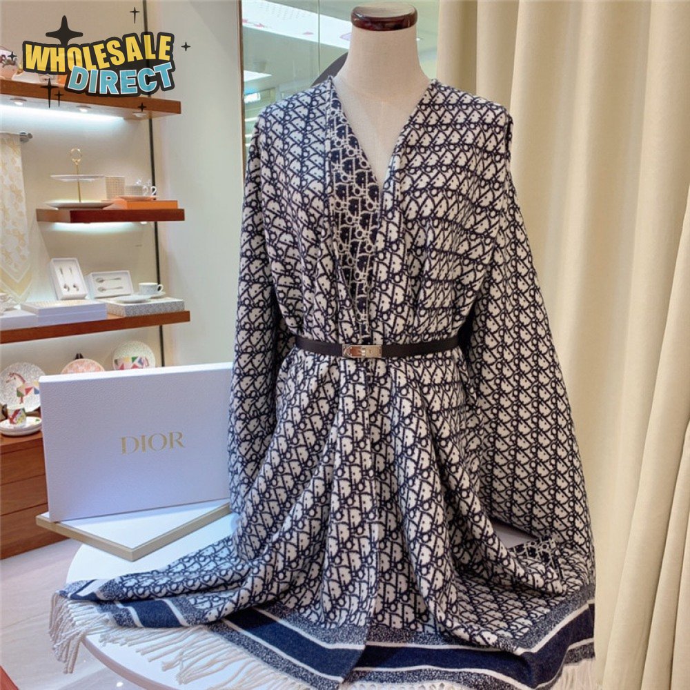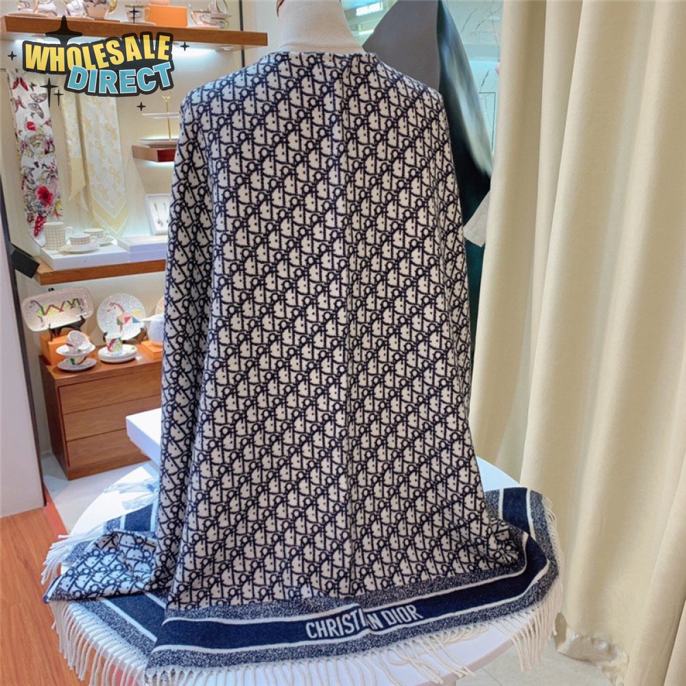 dior blue cashmere oblique print cape shawl