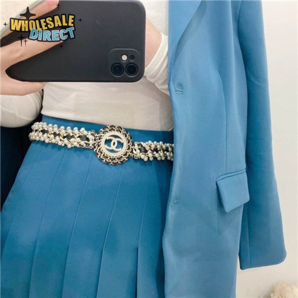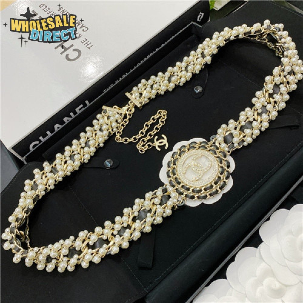 chanel pearl diamond leather belt